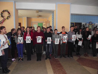 Під таким гаслом у школі 29 листопада 2019 року був проведений національно-патріотичний флешмоб. Флешмоб розпочали учні п’ятих класів піснею «Ми прийшли сьогодні дружно на Майдан». Продовжили захід учні 6-х класів інсценізацією «Як це було» за участю «Беркутівця» (Кучмай Станіслав) та «Сотника – Голуба» (Гороховський Юрій). Учні 7-9-х класів у ході флешмобу проілюстрували гасло «Слава Україні – Героям слава!». Завершився флешмоб зворушливою поезією «Запах Майдану» у виконанні Флінти Юлії та закликом учнів 5-8-х класів «Любіть Україну».