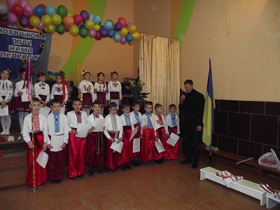Голова Залозецької селищної ради Любомир Фесик і директор школи Ярослав Нечай привітали юних козачат та вручили їм солодкі подарунки.