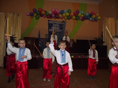 І ось – урочиста мить. У вишиванках та з піднесеним настроєм стояли на сцені четвертокласники, справжні нащадки козацького роду. Вони з гордістю розповідали про Запорізьку Січ, читали вірші про славних козаків, виконували козацькі танці та співали пісні, прославляючи козаків, рідний край, свою Україну.