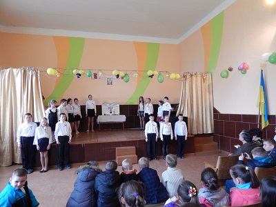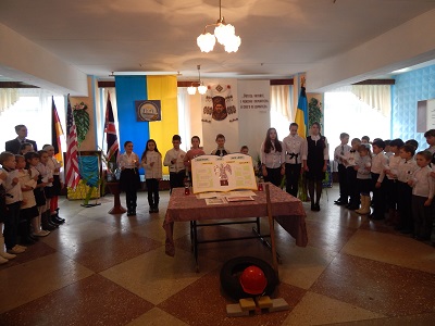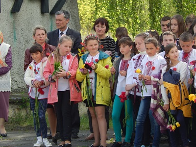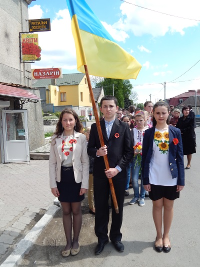На очах ветеранів сльози. «Ми, молоде покоління, не забудемо подвиг предків», - від імені учнів школи присягає учень 10-го класу Ватрас Дмитро. Учениця 10-го класу Флінта Христина зворушує всіх поезією про осиротілу матір героя і закликає: «Війна, іди в небуття і ніколи більше не повертайся». На обличчях учнів роздуми. Чому? Чому досі гинуть бійці? Невже Україна не заплатила ще гідної ціни за свободу?