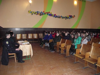 Під час зустрічі відбулася серйозна конструктивна розмова з питань профілактики правопорушень серед неповнолітніх, проблем булінгу, насильства в сім’ї і правомірної поведінки в цілому. Учні ознайомилися з проблемами в роботі працівників правоохоронних органів та специфікою професії поліцейського, окремими статтями АК та КК України. На завершення зустрічі правоохоронці відповіли на ряд запитань з боку присутніх у залі.