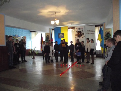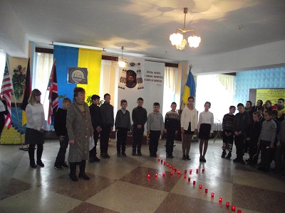 З вступним словом до учнів звернувся директор школи Я.В. Нечай. Учні 5-А класу підготували уривок з вистави «Жнива скорботи». Учні 8-А класу - літературну композицію. Скорботна хвилина мовчання зворушила серця усіх присутніх.