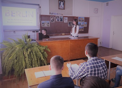 7 березня учні 8-11 класів здійснили цікаву віртуальну екскурсію Німеччиною. Одинадцятикласники підготували мультимедійні презентації про найбільші міста Німеччини. Глядачі мали змогу заочно відвідати їх і збагатити знання про цікаві та визначні пам’ятки архітектури. Зупиняючись в Бремені, ми зустрілись з Бременськими музикантами завдяки учням 8-Б класу, які продемонстрували сценку з відомої казки братів Грімм.