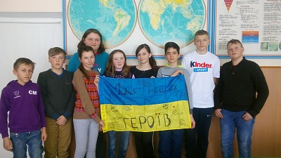 Нашим героям потрібна постійна підтримка з боку держави, народу, який вони захищають. Добре, що є такі люди, які своєю діяльністю допомагають не тільки словом, а і ділом, це - волонтери. Завдяки їхній роботі всі бажаючі можуть у свій спосіб долучитися до підтримки захисників. Так, учні 8-А класу СЗОШ І-ІІІ ступенів смт Залізці, передали в зону АТО прапор. На цьому жовто-блакитному полотні кожен написав побажання. Наскільки щирими були слова дітей! Тут і вірші, і прості слова вдячності, але суть їх така: - «Тримайтесь!», «Бажаємо здоров'я!», «Повертайтесь живими!».