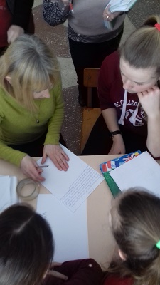 Учні 7-А, 8-Б, 9 класів взяли участь у мовознавчому квесті. Цікаві і захоплюючі завдання шукали в «надрах землі», в історичному музеї, у методичному кабінеті, у початкових класах під свічадом, у «храмі збереженого часу». Вони відгадували загадки, малювали відгадки, розшифровували прислів’я та приказки, пригадали правопис слів іншомовного походження, виправляли граматичні помилки.