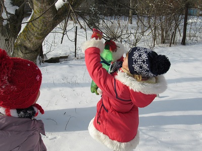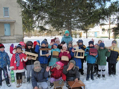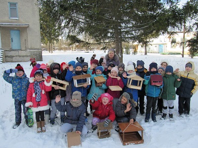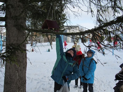 При допомозі батьків були виготовлені годівнички, і діти з великою радістю розвісили їх на деревах біля школи. Тепер щоденно на великій перерві підгодовують синичок, горобчиків, снігурів, сорок, омелюхів, сойок, ворон, граків, які прилітають до своїх їдалень.